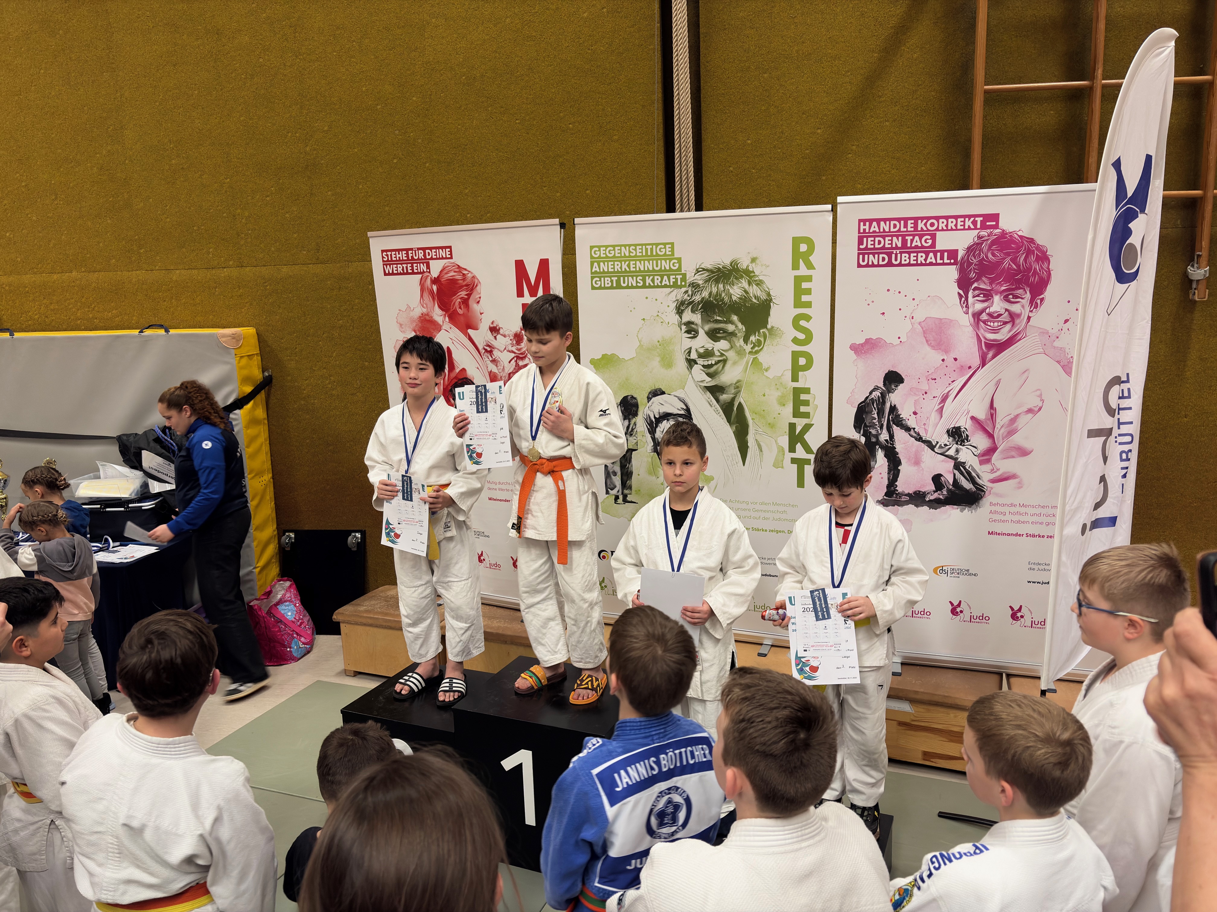 In der Jugend U10 hatte es Hergen Brennecke vom HSV Hankensbüttel im Pool „Schaf“ schon etwas schwerer. Seine Gegner hatten teilweise bereits ein paar Jahre Wettkampferfahrung. Doch Hergen griff seine Gegner unerschrocken und kraftvoll an und konnte sich selbst mit einem weißen Gürtel gegen höhergraduierte Gegner mit einer Form von Seoi-Nage und mit Haltegriff durchsetzen. Lediglich im letzten Kampf musste er sich knapp geschlagen geben. Diese Silbermedaille hat er sich verdient!